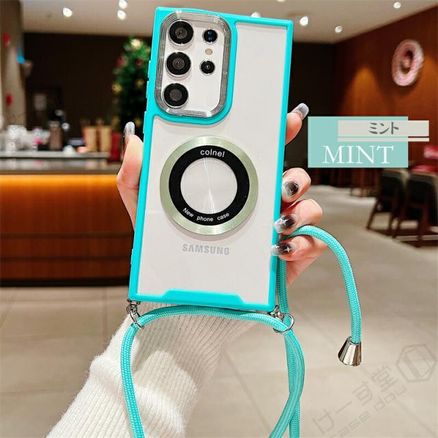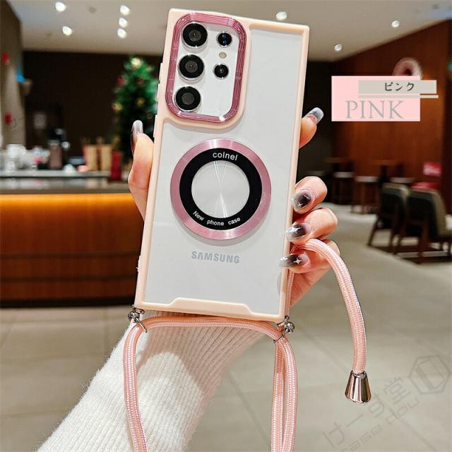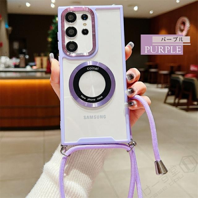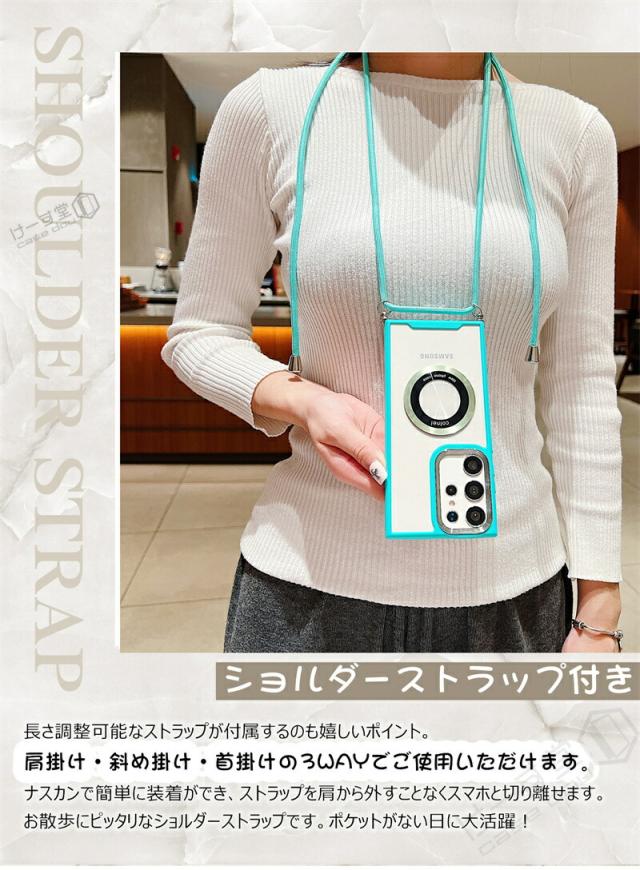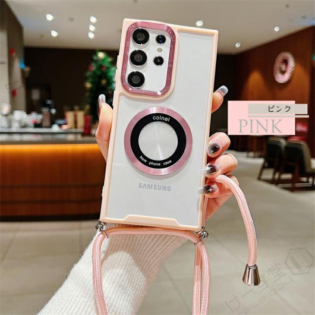クリア スマホショルダー ギャラクシー A36 S23FE カバー Magsafe用 リング 磁気増強 メタルリング Galaxy S24 S22 S23 Ultra A54 A53 A52 A32 5G スマホケース ショルダー タイプ GalaxyA53 GalaxyS23 FE 5G ケース マグセーフ かわいい 軽量 おしゃれ ワイヤレス充電