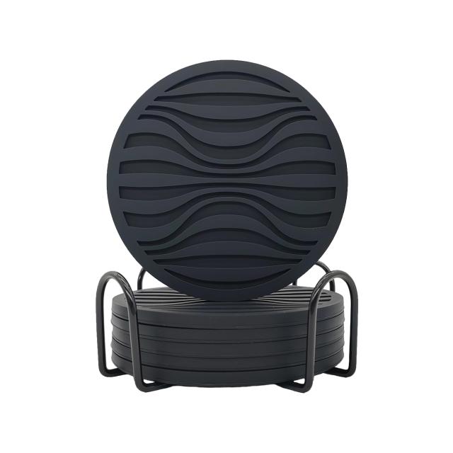 ◆商品名:烏の樹 コースター くっつかないコースターシリコン 水滴を受け止める 結露の水滴防止 6個セット収納棚付き円形10cm (黒い)