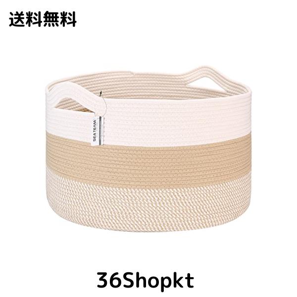Sea Team ランドリー収納 コットンロープバスケット 収納かごバ スケット 持ち手付き ランドリー ランドリーバスケット 収納ボックス 洗