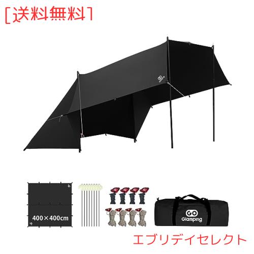 【タープ仕様】「材質」ポリコットン生地;「定員」約4-5人;耐水圧:500mm 本体サイズ:400cm×400cm、収納サイズ:約50x16x16cm、セット重量:約4.3kg【内容物】タープ本体×1、自在付きロープ×8本、ペグ×8本、キャリーバッグ×1枚、取扱説明書(日本語)×1枚 【ご注意】本製品にポールは付属しません。別途を買い求めください。