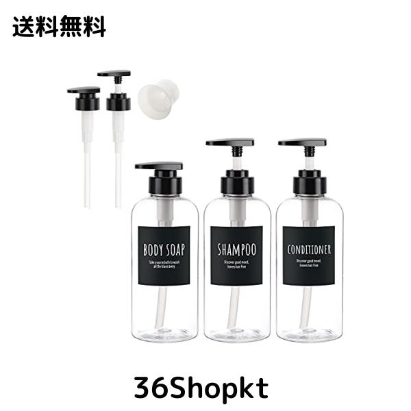 ◆商品名:Segbeauty シャンプーボトル ディスペンサー 透明 3本セット 500ml 漏斗付き 大容量 ブラック 丸形 漏れ防止 詰め替えボトル おしゃれ 浴