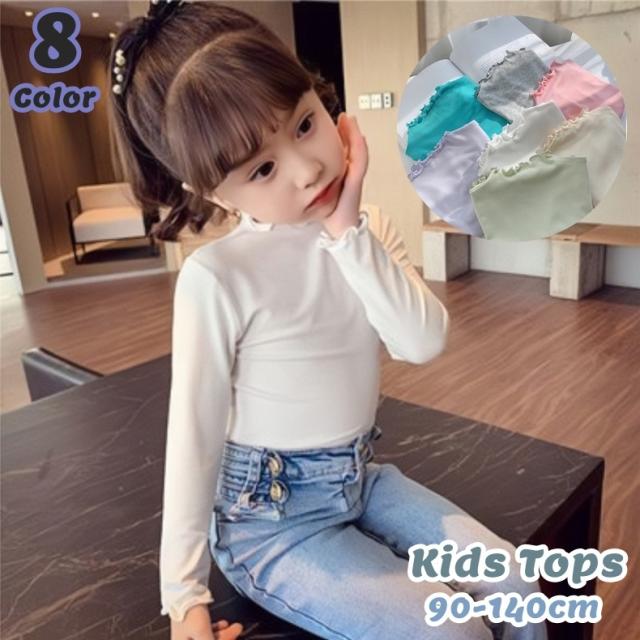 カットソー 長袖 ハイネック タートルネック トップス 単色 無地 メローロック 巻ロック キッズ 男の子 女の子 子供服 子