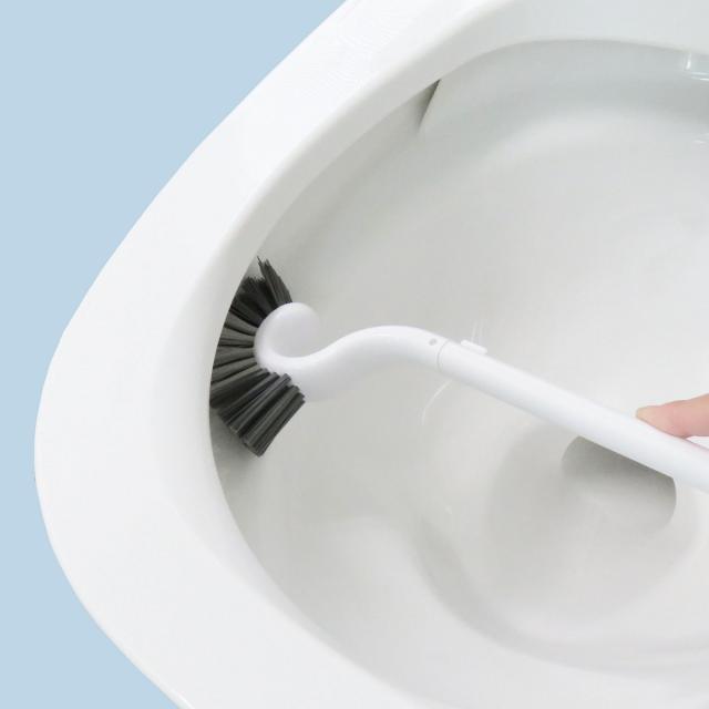便器のフチ裏までフィットする形状で、ガンコな汚れもしっかり落とします。ハード毛とソフト毛の2種類のブラシ毛からできています。