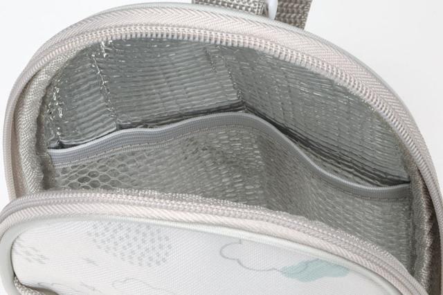 内側は、保温・保冷効果のあるアルミ蒸着フィルム張りです。お出かけのお供として年中活躍します。