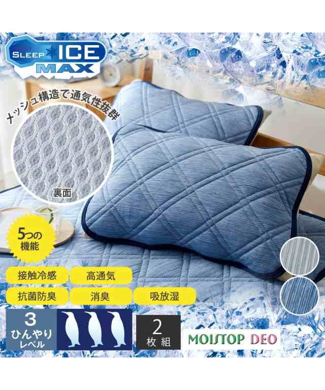 枕カバー 超冷感 除湿 高通気な裏面ハニカムメッシュ 枕パッド 同色2枚組 ピローカバー 寝具 43×63cm用 ニッセン nissen