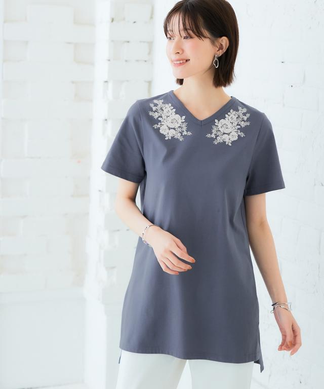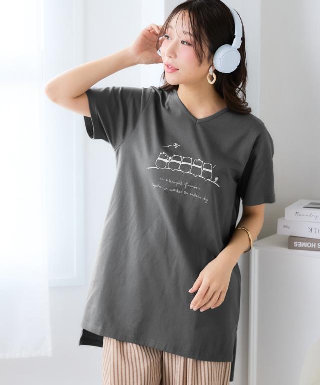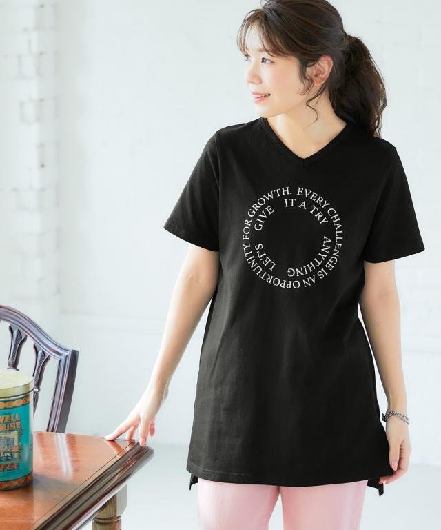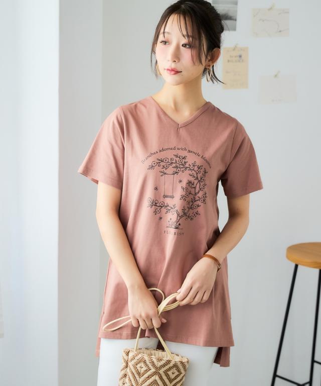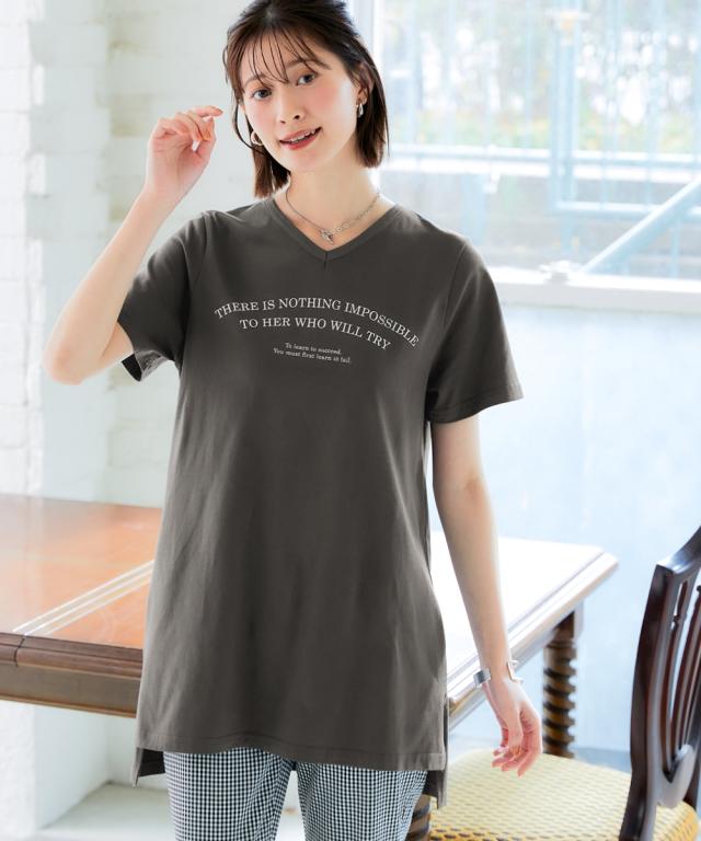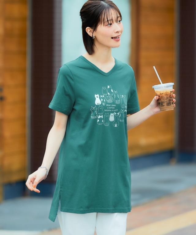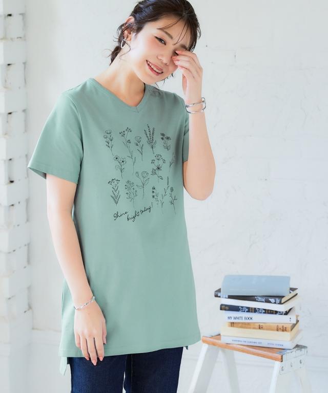 チュニック レディース 綿100% プリント V ネック Tシャツ 接触冷感 UVカット 選べる柄 夏 体型カバー お尻隠れる S/M/L/LL ニッセン nissen