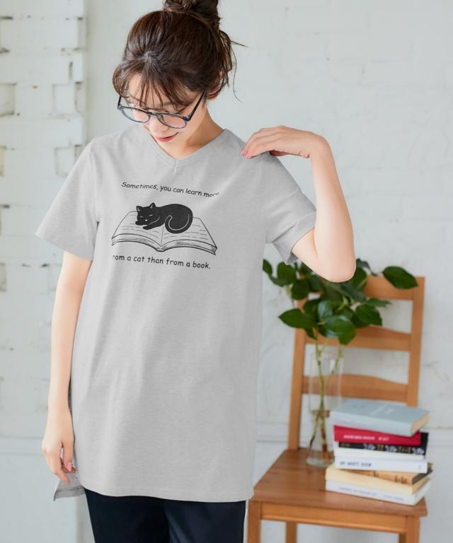 チュニック レディース 綿100% プリント V ネック Tシャツ 接触冷感 UVカット 選べる柄 夏 体型カバー お尻隠れる S/M/L/LL