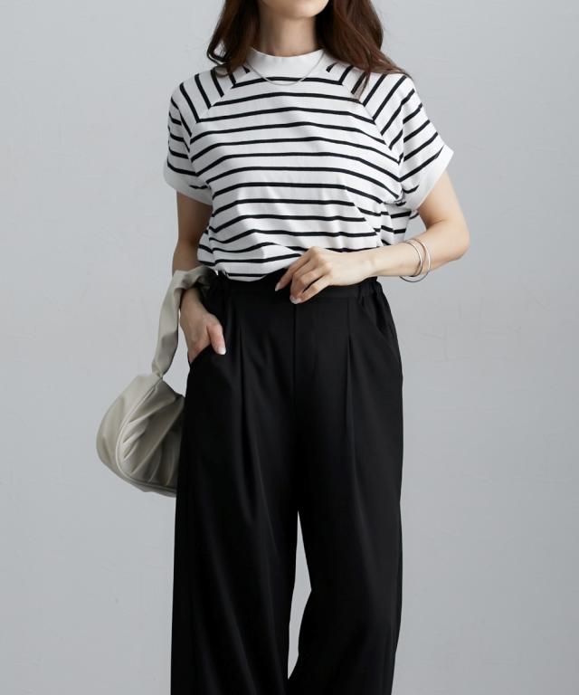 ・定番の無地に、ボーダー柄も展開。キレイ目にもカジュアルにもコーディネートの幅が広がります