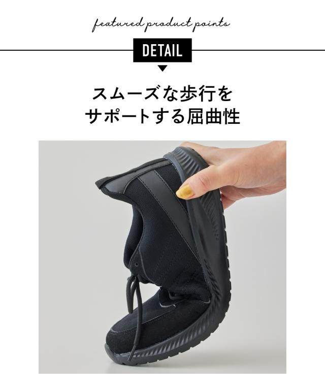 ・一日中歩く日も安心な片足180g(Lサイズ片足)の軽量スニーカーに今っぽいデザインが仲間入り。