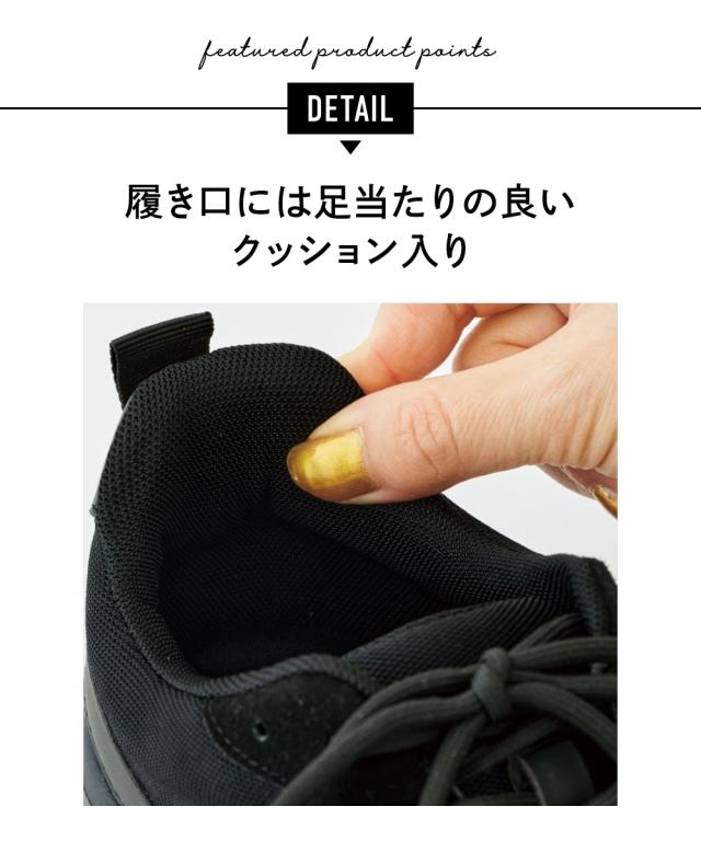 材質=合成繊維・合成皮革(スエード調)・合成皮革 底材=合成底 底の厚さ(後ろ)=約3.5cm ワイズ=3E 重量=約180g(Lサイズ片足) 原産国:中国製