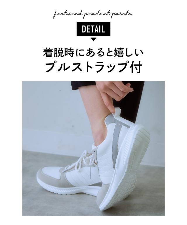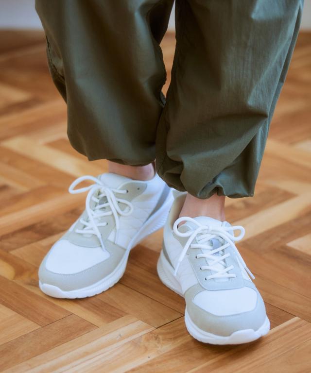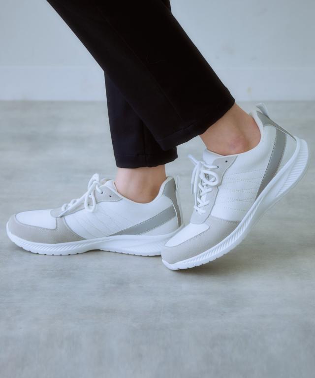 ・絶妙な配色がおしゃれでスポーティな見た目と、足がきれいに見えるシルエットが大人っぽくかっこいい足もとを演出。