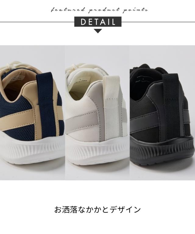 ・スニーカーらしいフェイクレザーとメッシュ素材を使用。