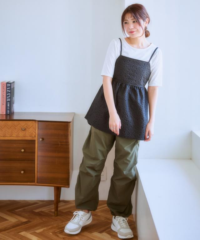 ・すっきりとしたシルエットなので、カジュアルからきれいめまで幅広いコーデに合わせやすい。