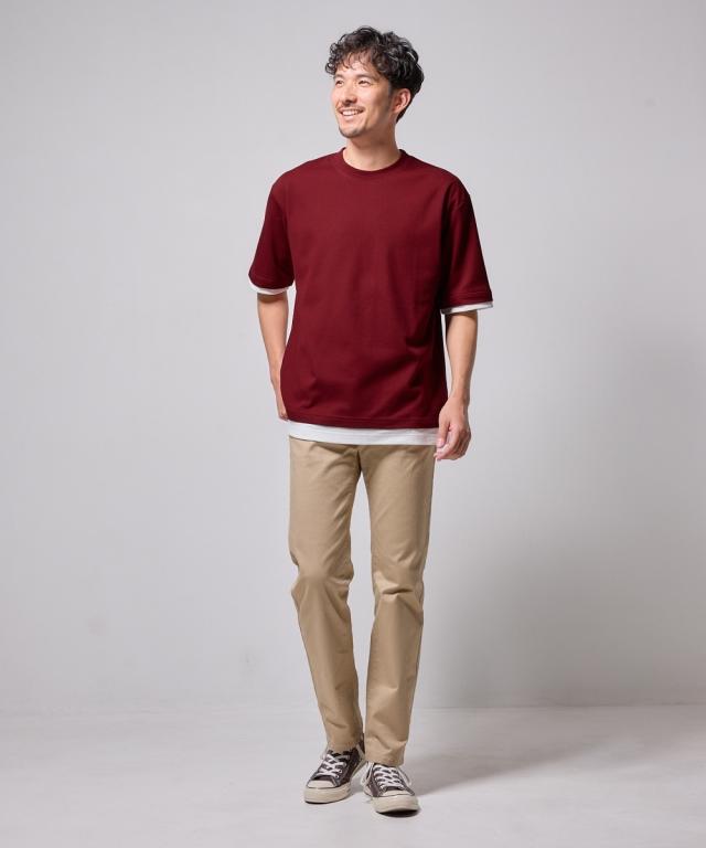 5分袖と重ね着風のデザインでこなれ感たっぷりのTシャツ。