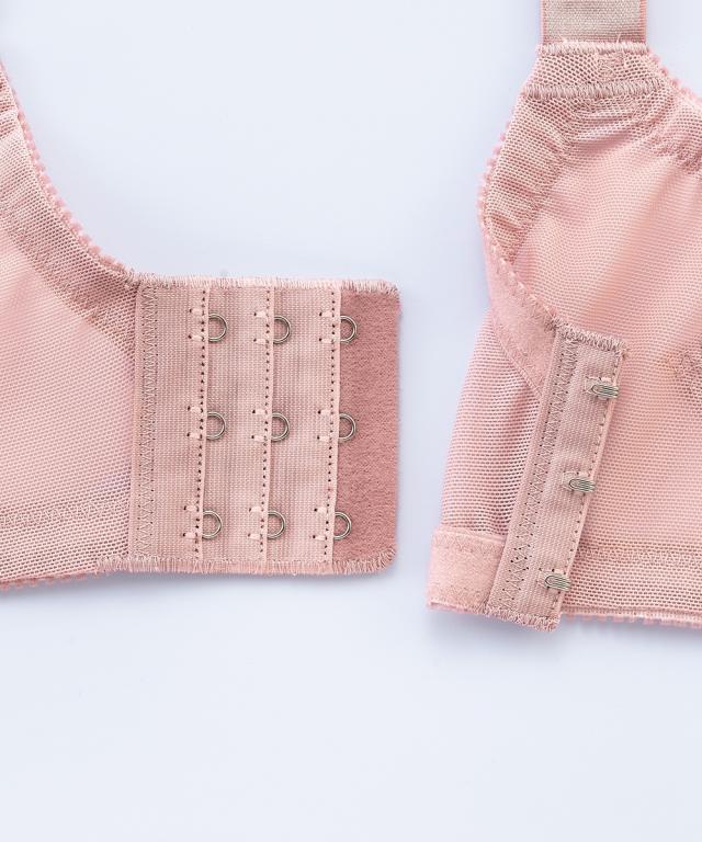 ・ストラップとカップをつなぐ部分はDの形をしたカンを採用。バストを上に引き上げる