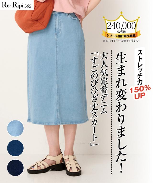 スカート ひざ丈 大きいサイズ レディース すごのび ストレッチ デニム ゆったり ヒップ L/LL/3L/4L/5L ニッセン nissen