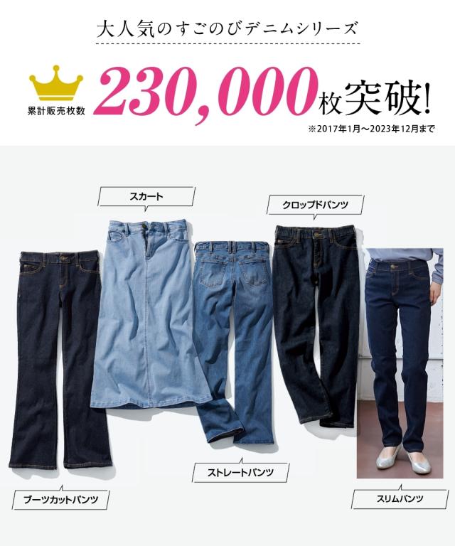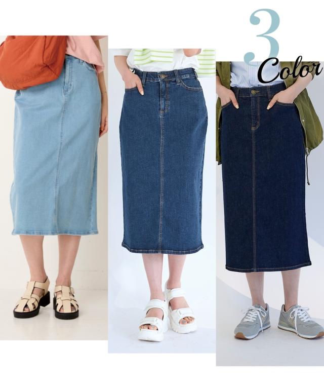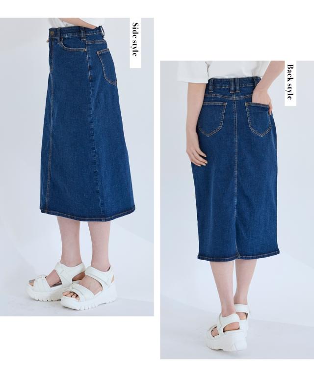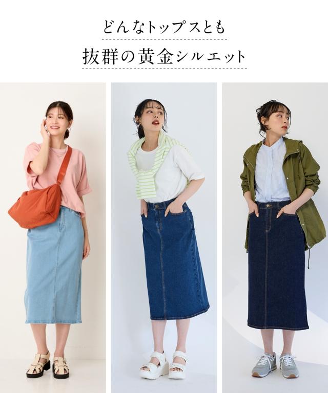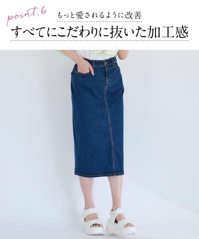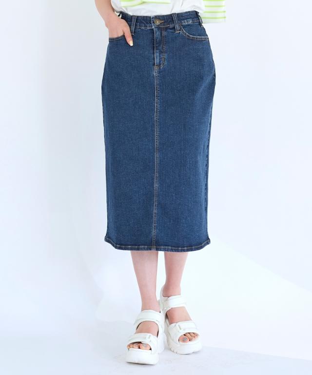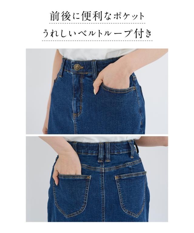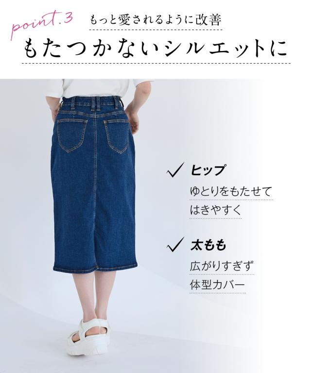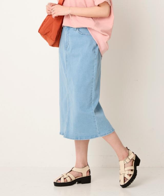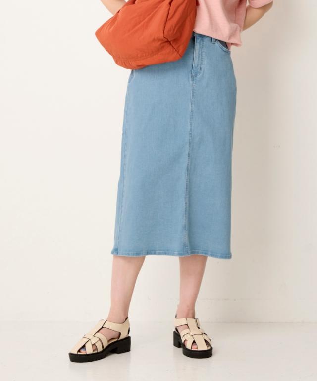 大きいサイズすごのびストレッチデニムスカート(ゆったりヒップ)