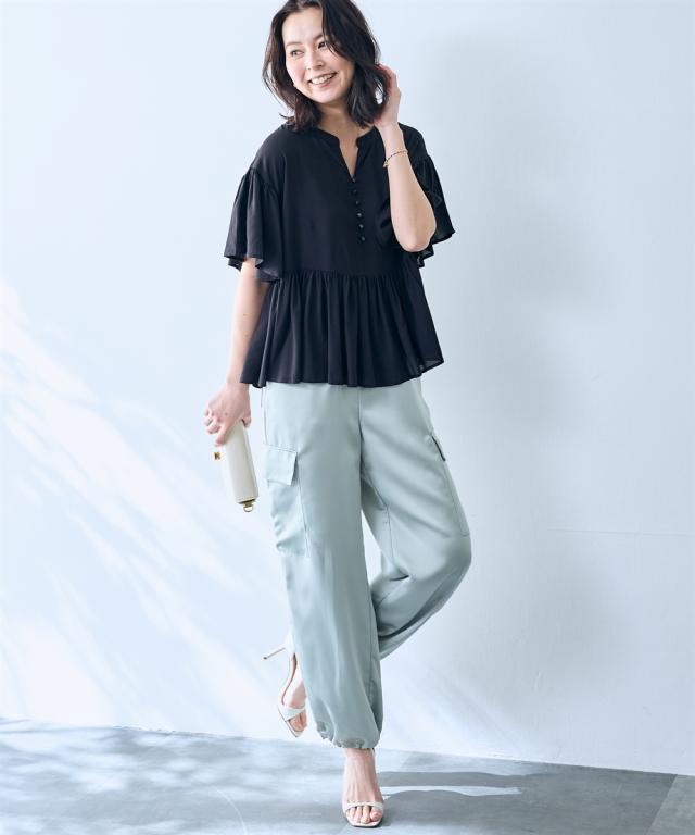 どんなトップスとも合わせやすく、裾のドローストリングでシルエットを調節できるので、様々な着こなしが楽しめます。この夏、大活躍間違いなしのアイテムです。