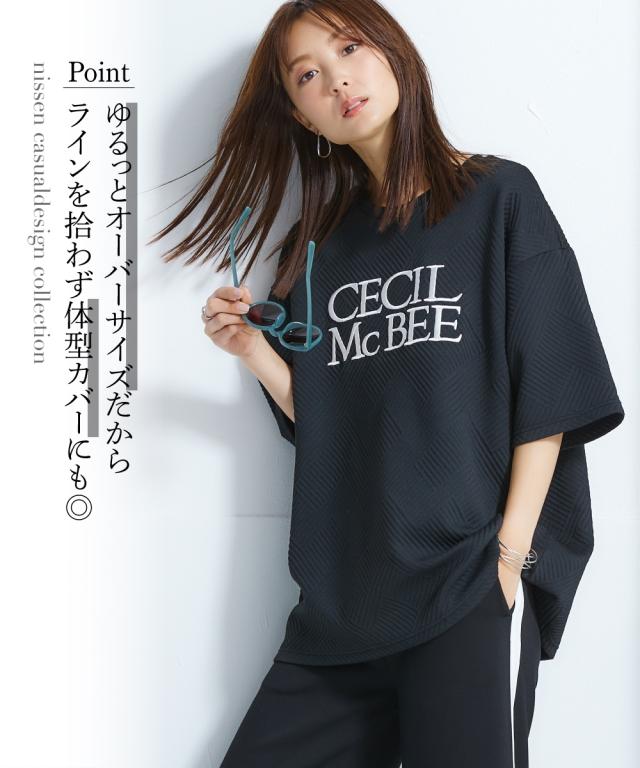 Tシャツ カットソー レディース CECIL McBEE 変形キルト プルオーバー S〜M/L〜LL/3L〜4L/5L〜6L ニッセン nissen