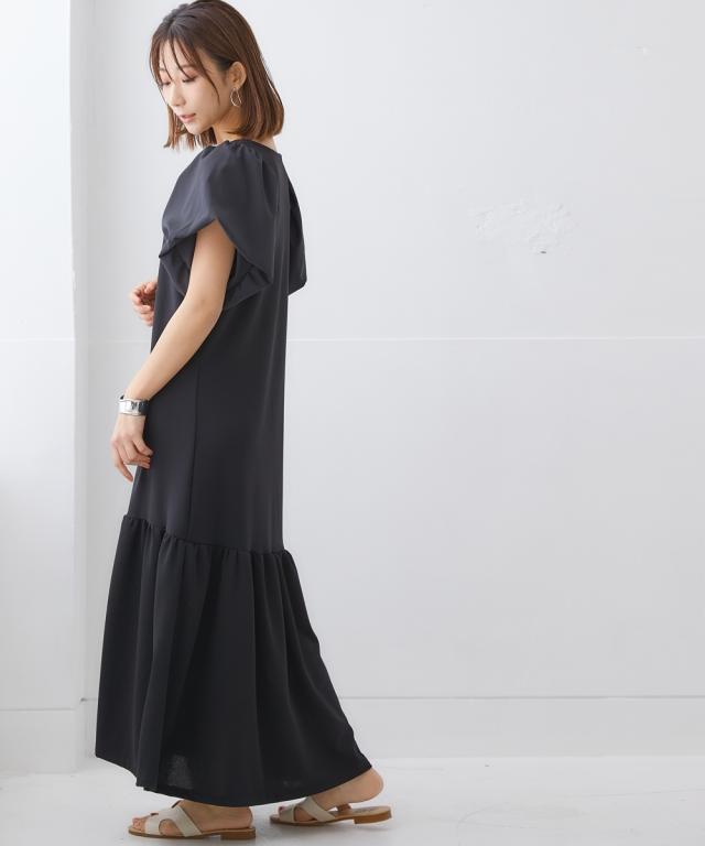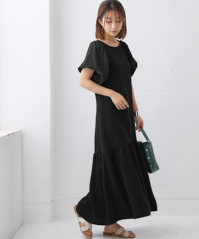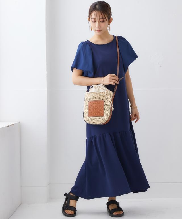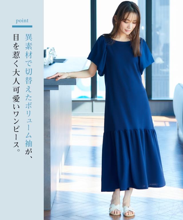 ワンピース ロング マキシ レディース 袖切替ティアード ひざ下 S〜6L ニッセン nissen