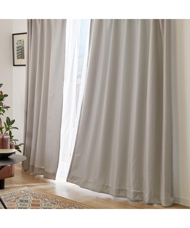【カーテンセット】遮光裏地カーテン&レース4枚セット|ワッフル