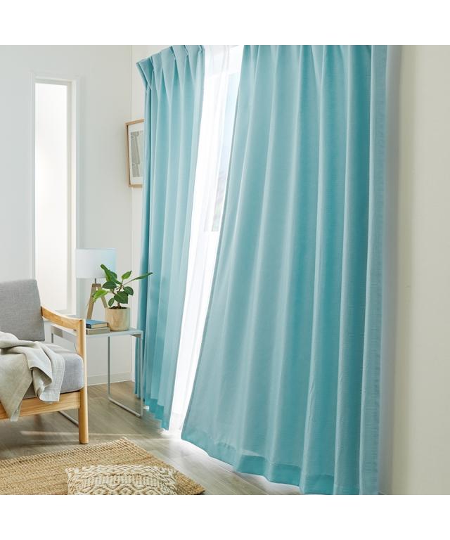 【カーテンセット】遮光裏地カーテン&レース4枚セット|ワッフル