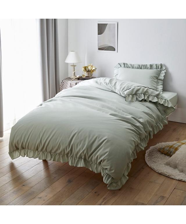 大人カワイイ布団カバーセットが新登場!フリル付きの仕様で寝室を大人かわいく演出できます。