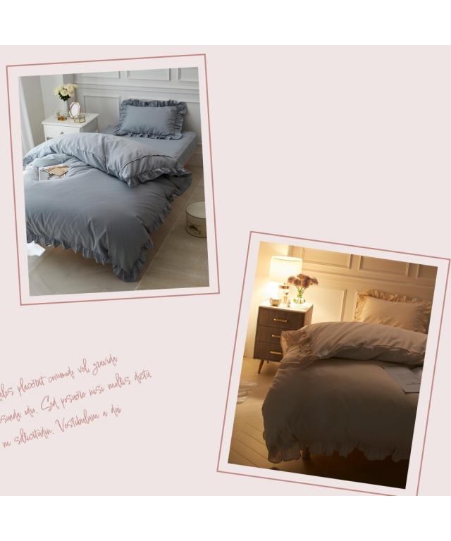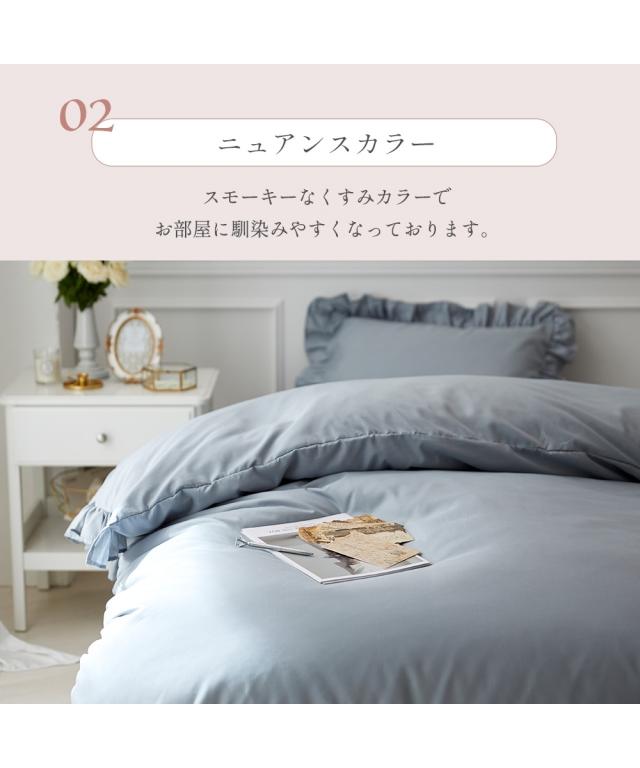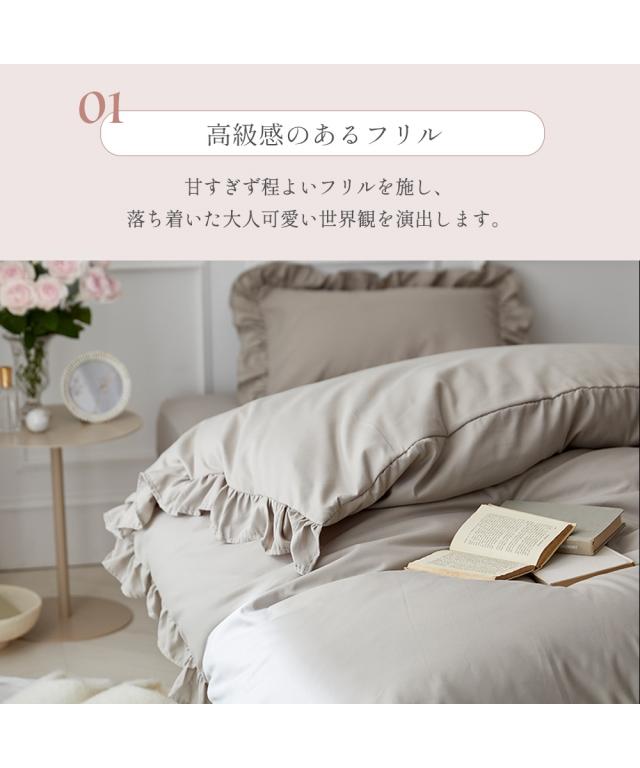 大人カワイイ布団カバーセットが新登場!フリル付きの仕様で寝室を大人かわいく演出できます。