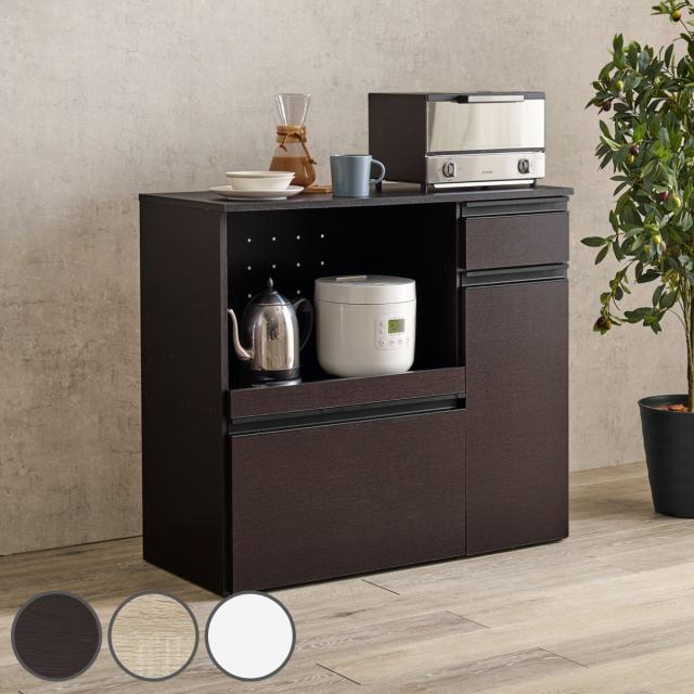 キッチンカウンター 幅89cm 収納庫タイプ キャビネット ( カウンター 収納 キッチン 棚 ラック 家電収納 コンパクト 省スペース コンセント付 収納庫 引き出し 可動棚 ダークブラウン ナチュラル ホワイト )