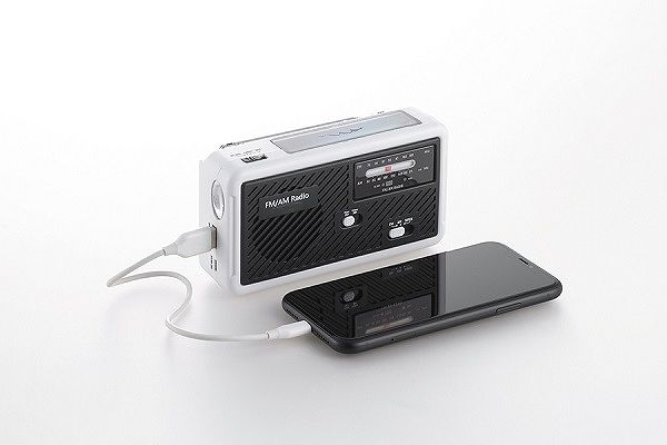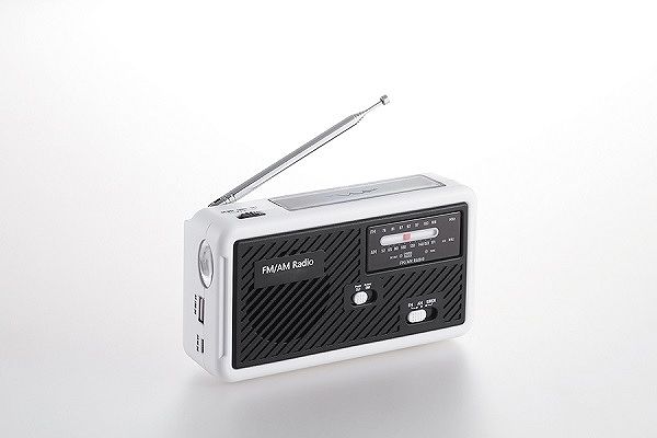 本体:ABS樹脂・ポリスチレン、光源:LED1灯、バッテリー容量:1,200mA、電源:ソーラー充電・手回し充電・USB充電・単4乾電池×3本使用(別売)、機能:ライト・モバイルバッテリー・AM/FMラジオ・サイレン、付属品:USBケーブル(Atype-Ctype)