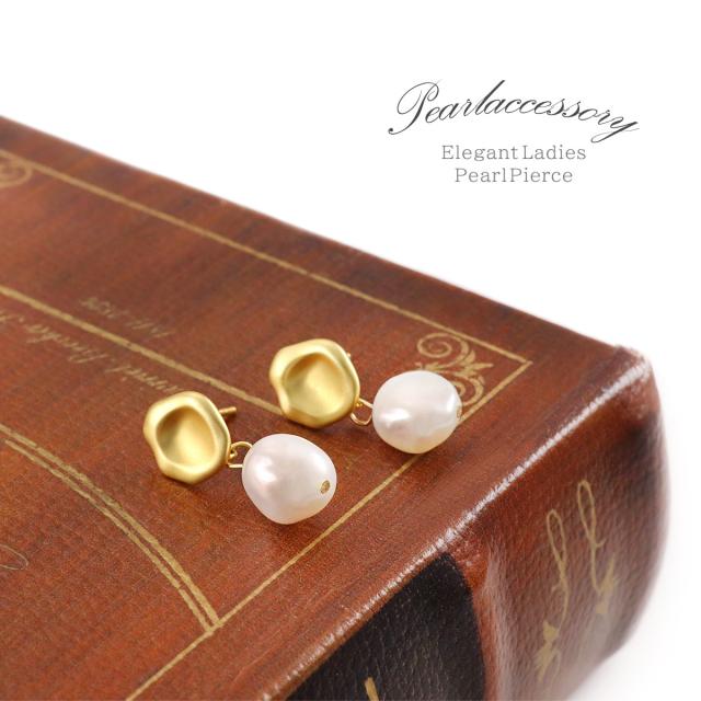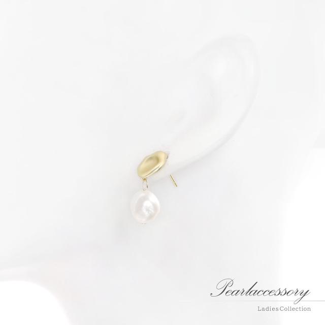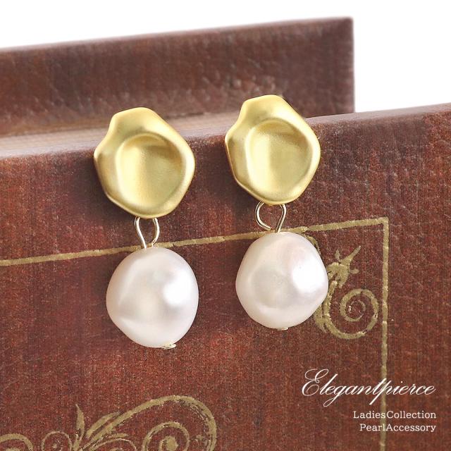 淡水パール ピアス レディース 揺れる バロックパール おしゃれ シンプル エレガント ゴールド silver925 アクセサリー 淡水真珠 ゆれる スタッド 水たまり シーリングスタンプ 封? モチーフ デザイン パール 6月 誕生石 30代 40代 50代 女性 ホワイトデー お返し