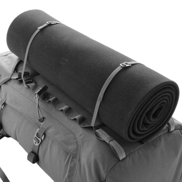 バックパックにマットなどを外付けするストラップアクセサリー。