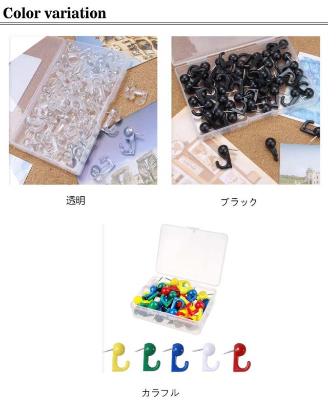 | 【ピンフック】 石膏ボード用 壁 フックは石膏ボードの壁にフォトフレームなどを飾ったり、カレンダーを掛けたりするのに最適です。お部屋を飾ったり、誕生日やハロウィン、お正月やクリスマスの雰囲気を作ったりするのにも使えます。 【壁傷つけない】 石膏ボード ピン フックのピンは細いので、抜いた跡も小さく目立たないく、穴埋めパテなどを塗って穴を埋めると全然目立ちません。賃貸でも使用できます。 【安定性抜群】 耐荷重約1kg。押しピンフックのピンが斜めに刺すように設計されているので、工具なしで簡単に刺せてガッチリ固定できます。1箱に50個入っているので、長く使えます。 【目立たない】 画鋲 フックは高品質の透明プラスチックで作られており、丈夫で目立たない、あらゆる色の壁に違和感なくキレイに使用できます。また、透明ケース付きで収納できるので便利です。 | |