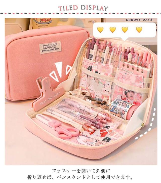 | 【大容量ペンケース】【ペンが探しやすい】【大容量のサイズ】 ファスナーを開いて外側に折り返せば、ペンスタンドとして使用できます。 ガバっと開いてそのまま自立する!文具・小物の取り出しも収納も、使いやすい! 全8ポケットでたくさんのペンや手帳用シールやハサミなど収納できます ファスナーには引き手がついているので開閉しやすくなって、様々なシーンで活躍してくれます。 カフェやオフィス、外出先などいつでも、どこでも、手帳やノートの時間がもっと楽しくなる。 | |
