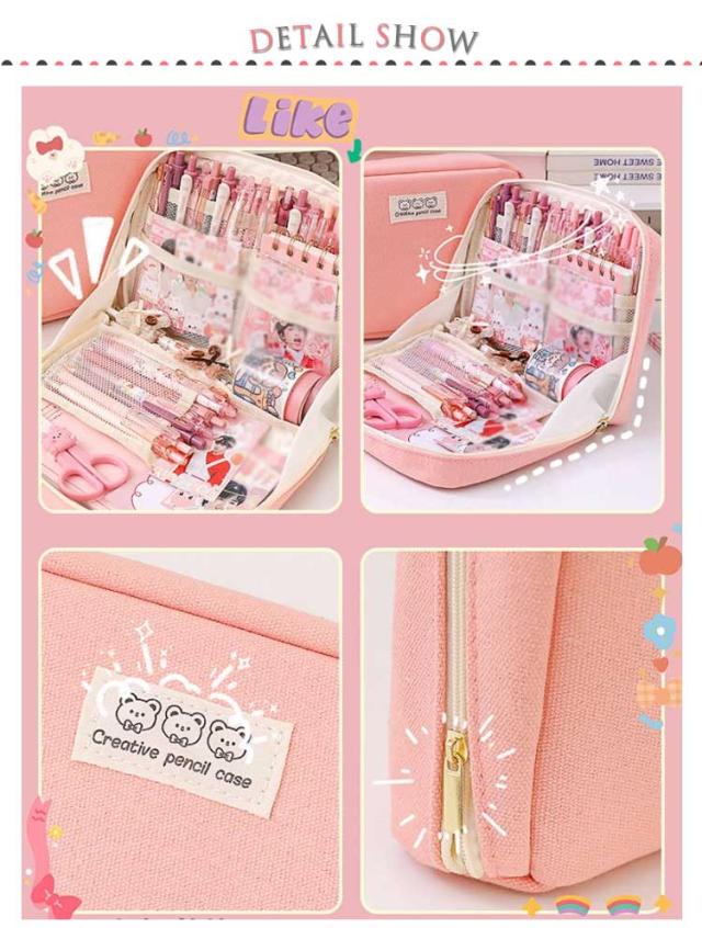 ペンケース 筆箱 仕切りポケット 文房具 自立式 大容量 帆布 ペンケース ふでばこ ペン収納 手帳が入る 収納袋 多機能 可愛い おしゃれ 子供用 大人用 無地 シンプル