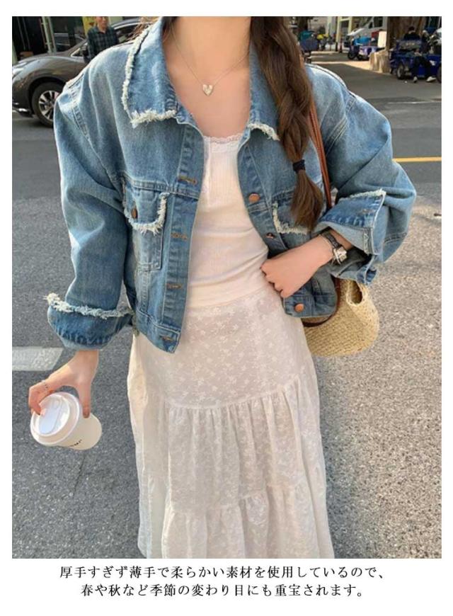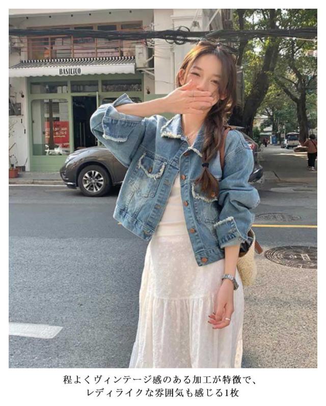 | カジュアルコーデ、可愛いコーデ、大人っぽいコーデなど幅広いコーデに使えるデニムジャケット 厚手すぎず薄手で柔らかい素材を使用しているので、春や秋など季節の変わり目にも重宝されます。 程よくヴィンテージ感のある加工が特徴で、レディライクな雰囲気も感じる1枚 スカートやパンツ、どんなボトムスとも相性抜群な手放せない万能アイテム | |