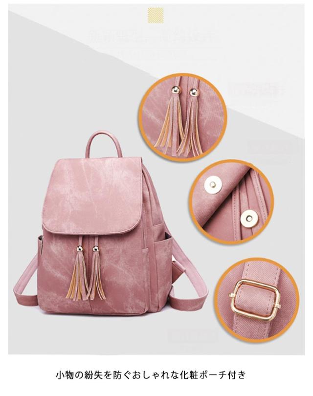 可愛い バックパック リュック リュックサック 2way フリンジ りゅっくタッセル 巾着 コンパクト バッグインバッグ フラップ ショルダーバッグ 撥水 化粧ポーチ付き ポーチ付き レディース 女子 リュックサック オシャレ カジュアル デイパック 通学