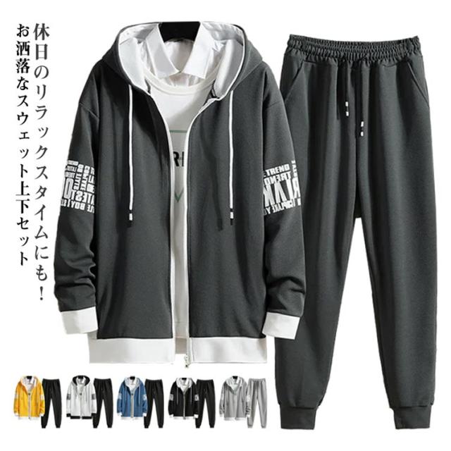 スウェットパンツ ジャージ スポーツウェア ジップアップパーカー セットアップ トレーニングウェア ジップアップパーカー 上下セット フード付き プルオーバーパーカー 長袖 ジョガーパンツ 長ズボン 大きいサイズ 体型カバー