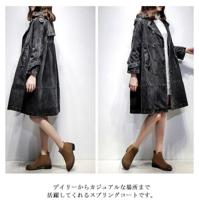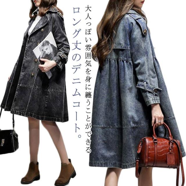 ダブルボタン デニム デニム アウター 羽織り 大きいサイズ デニムジャケット ロング丈 ジージャン コート ロングコート Gジャン レディース トレンチコート デニムコート 通勤 通学 カジュアル 体型カバー M L XL 2XL
