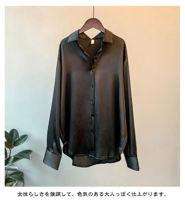 シャツ ブラウス とろみ サテン レディース 大きいサイズ トップス シャツ とろみ素材 光沢感 長袖 通勤 オフィスカジュアル UVカット 紫外線対策 上品 春秋 シャツブラウス 大人 普段着 オフィス