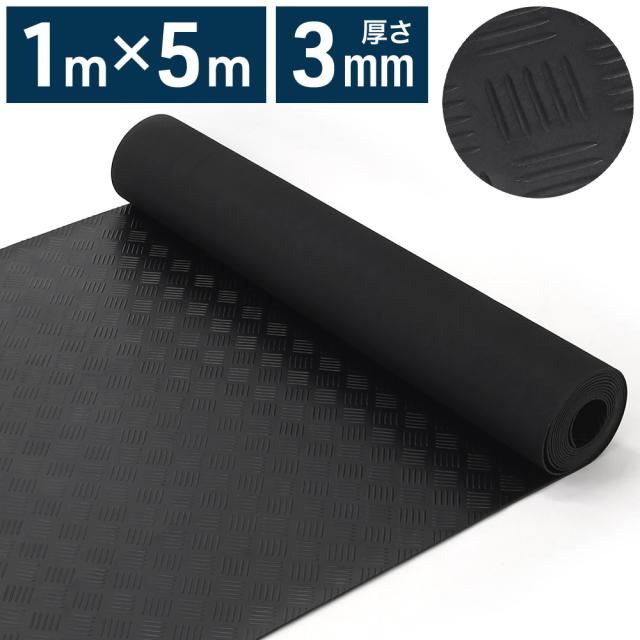 ゴムマット 【1m×5m】 厚さ3mm 駐車場 滑り止め 屋外 床 厚手 業務用 工業用 車 荷台マット ガレージフロアマット ガレージマット 工事 ガレージ 倉庫 農業 養生マット