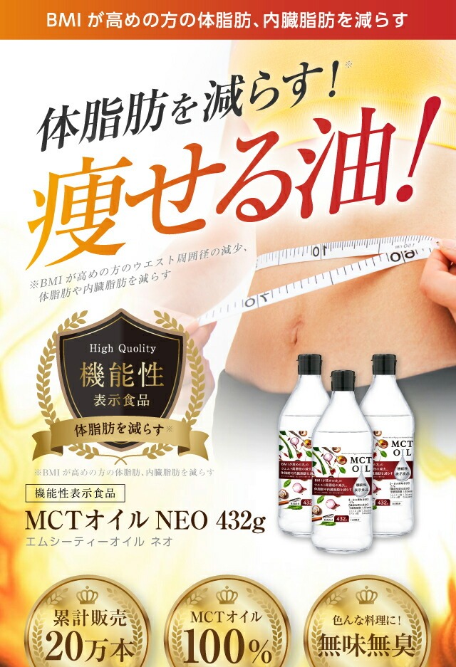 【機能性表示食品】【2本ご購入毎に1本プレゼント】ウエスト減少!『MCTオイル NEO 432g』【中鎖脂肪酸100%】ダイエット 中鎖脂肪酸 純度 100%