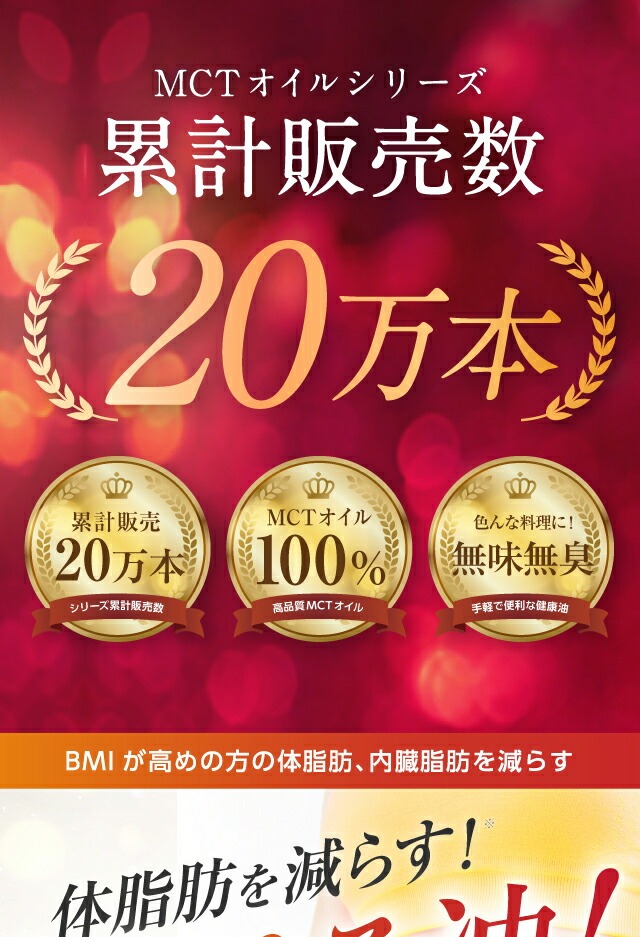 【届出表示】本品には中鎖脂肪酸(オクタン酸、デカン酸)が含まれます。中鎖脂肪酸(オクタン酸、デカン酸)はBMIが高めの方のウエスト周囲径の減少、体脂肪や内臓脂肪を減らすことが報告されています。