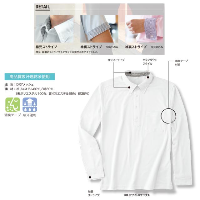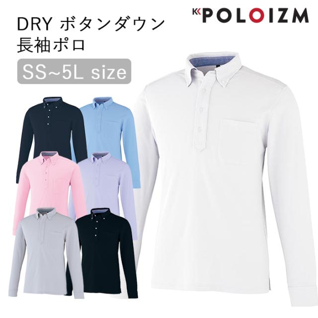 ポロシャツ 小倉屋 POLOIZM 長袖 DRYメッシュ 消臭 吸汗 速乾 ボタンダウン 長袖ポロ 胸ポケット 90301 SS〜5L 7色【送料無料】メンズ レディース 無地 大きいサイズ ビジネス ウエア 仕事着 事務服 保育士 介護士 看護師 作業服 涼しい 小倉屋ポロシャツ agesugi_sfa