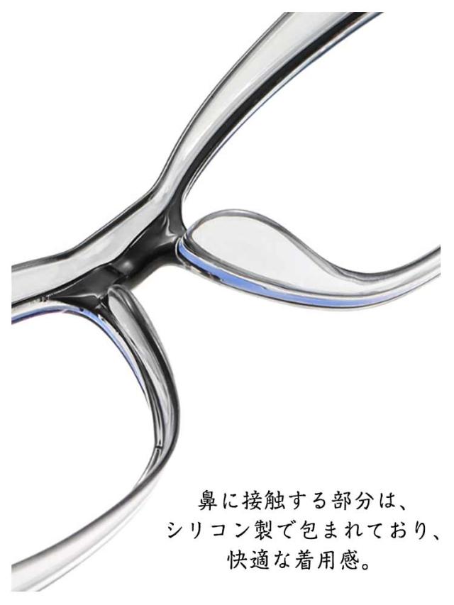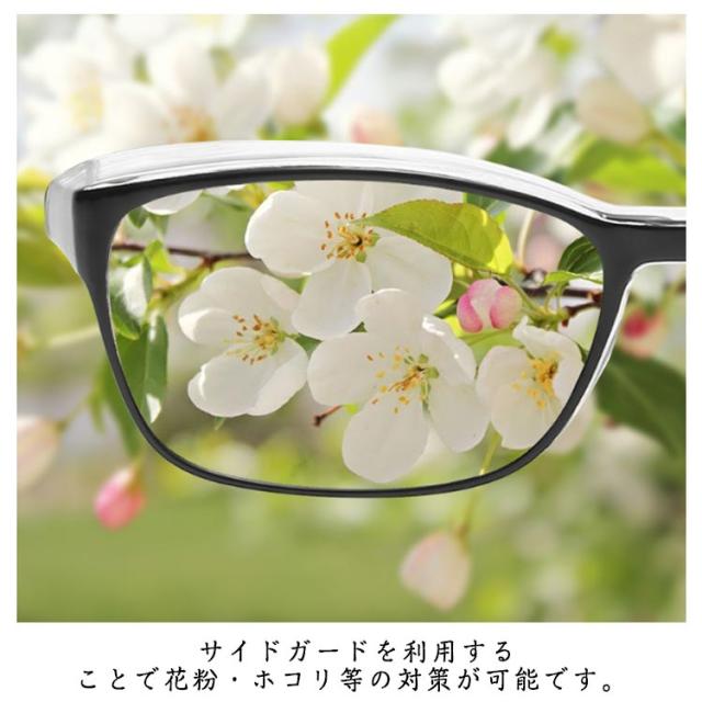 | 紫外線・ブルーライトカット機能付きの花粉メガネ サイドガードを利用することで花粉・ホコリ等の対策が可能です。 ブルーライトカットメガネは、ダメージの主原因である「ブルーライト」をカットすることで、眼の疲労感を和らげます。 また、紫外線カット機能を兼ね備えており外出先でも効力は発揮! 人間工学に基づくフレーム設計なので、長時間かけても疲れません!男性も女性も使える度なしメガネとなっております。 <details> ●立体的に広がったサイドガードデザイン。 ●鼻に接触する部分は、シリコン製で包まれており、快適な着用感。 ●重量は、たったの20.8g,柔軟性のあるフレームで、長時間身に着けやすいフレームです。 | |
