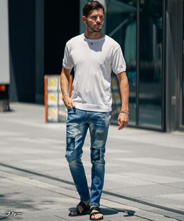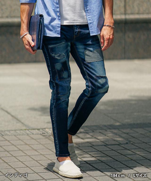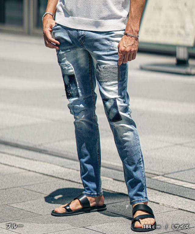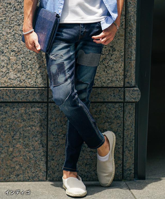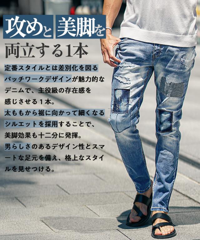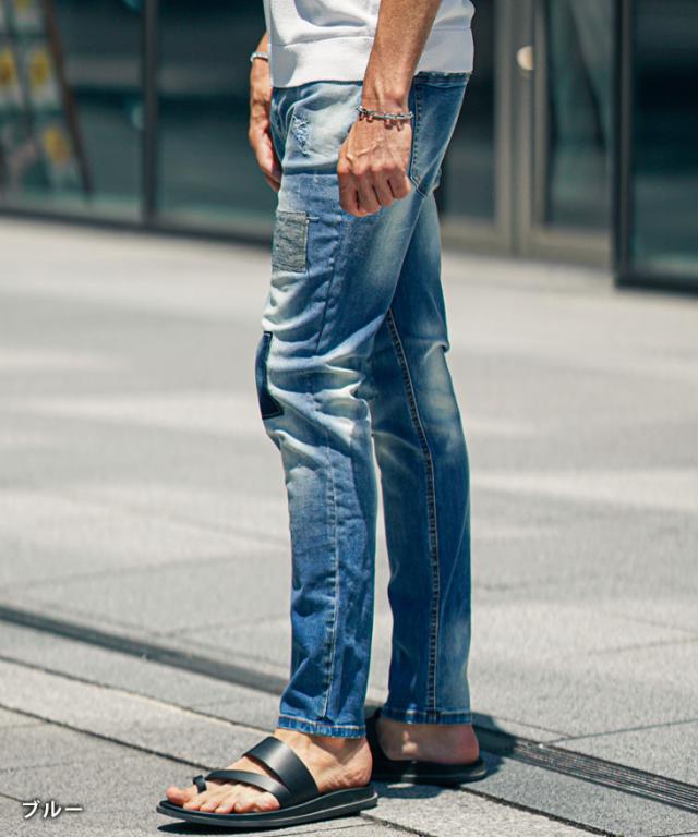 ジーパン メンズ テーパードデニム メンズ メンズ ジーンズ メンズ スキニー デニム メンズ スキニーパンツ リペアデニム ストレッチ パンツ タイト 細身 インディゴ 夏 夏服 夏物 春夏 メンズファッション ちょいワル お兄系 オラオラ系 夏新作 新作