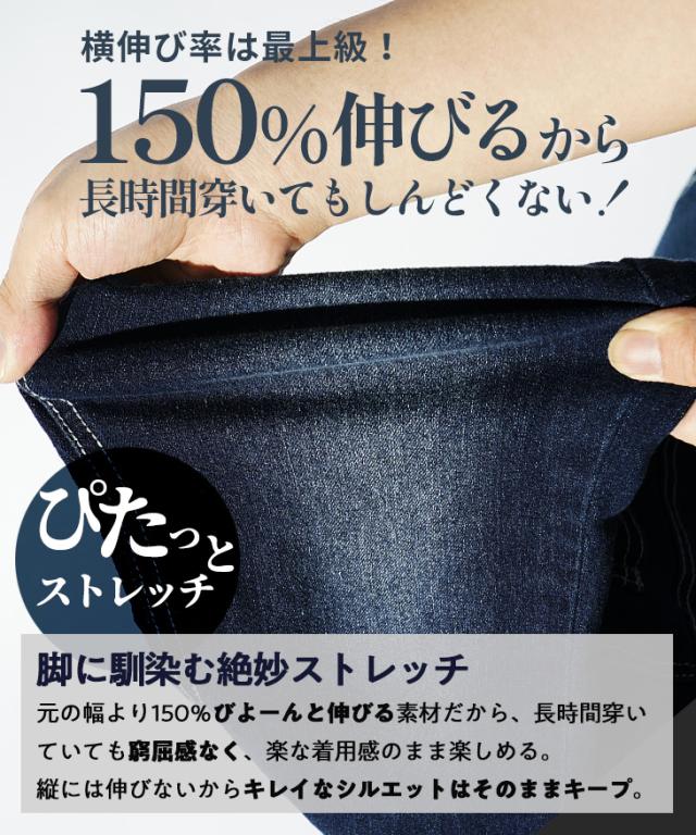 ストレッチ入りデニムで肌なじみが良くストレスフリーな穿き心地。