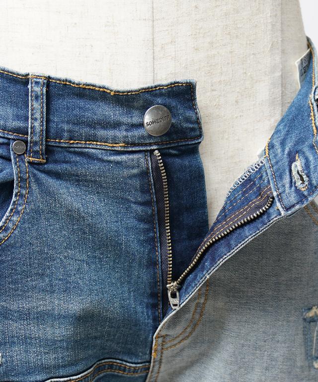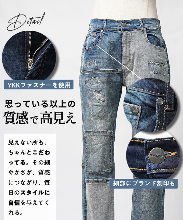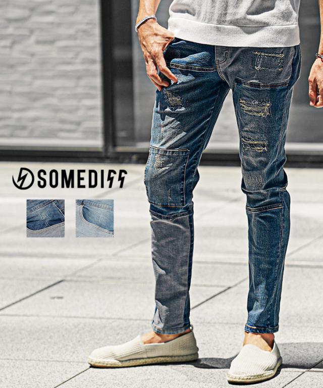 SOMEDIFF(サムディフ)『ダメージ切替テーパードデニムパンツ』