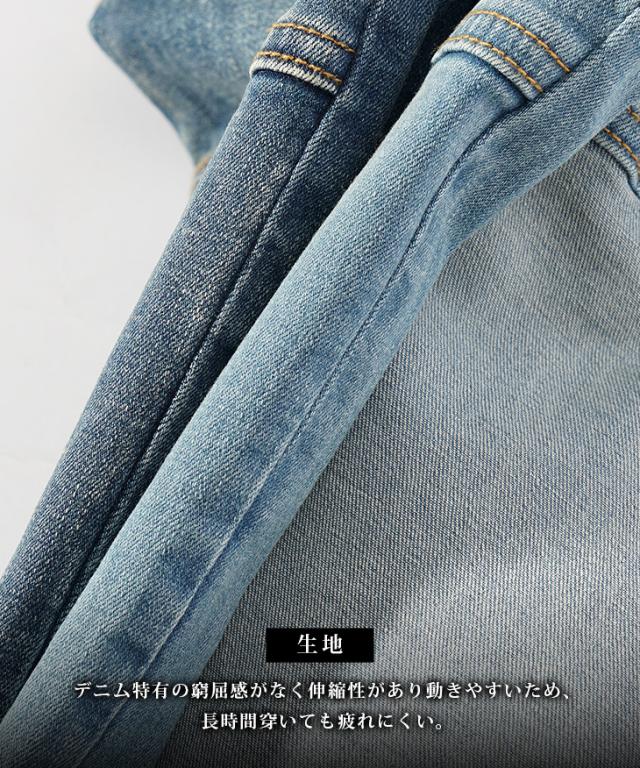生地は綿とポリウレタンを使用。ストレッチ入りデニムで肌なじみが良くストレスフリーな穿き心地。