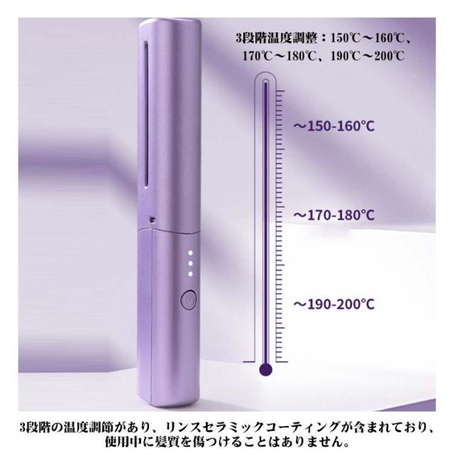 | 【ヘアアイロン】【カール&ストレート両用】【充電式】【蓋付き】 カールヘアとストレートヘアのどちらも楽しみたいという方にはこちらのヘアアイロンがおすすめです。 毛先をキャッチしやすいブラシ設計。絹のように美しく輝く髪を実現する、より繊細な頭皮をダメージから守る。 特製ブラシによって頭皮の血行がよくなり、髪に輝き、柔らかさ、そして弾力性を与える効果があります。 良質な材質:PTC材料を用いて製造し、耐久性があり、変形せず、歯が抜けない、断熱櫛歯+断熱ハウジング、二重保障。 3段階の温度調節があり、リンスセラミックコーティングが含まれており、使用中に髪質を傷つけることはありません。 櫛歯科学列はすべて均一に列を包み、特質コーティングを施し、髪を均一に熱を受けさせ、引っ張らずに髪を詰まらせない。 静電気防止技術:マイナスイオン発生器と高効率加熱技術を搭載し、ミニカール器を充電して10秒で加熱できる。均一な熱分布を実現し、髪に活力、光沢と弾力を与え、イライラを解消する。 大容量バッテリ4000mAh、約30分間の長時間航続時間。充電の不安を捨てる。日常のニーズに応える。 すべての髪質に適しています:柔らかくて、まばらで、濃密で、縮れて、甚だしきに至ってはひげ!ストレートブラシで髪を梳くだけで、イライラやカールを減らすことができます。 ファッションな見た目も贈り物に適しますので、母の日にお母さんに、感謝したい方に、出かけの多い友達に、自分にも最適なプレゼントです。 3段階温度調整:150℃〜160℃、170℃〜180℃、190℃〜200℃ バッテリー仕様:4000mAh 定格電圧:100~220V 定格周波数:50Hz 消費電力:45W 温度設定:150〜200℃ | |